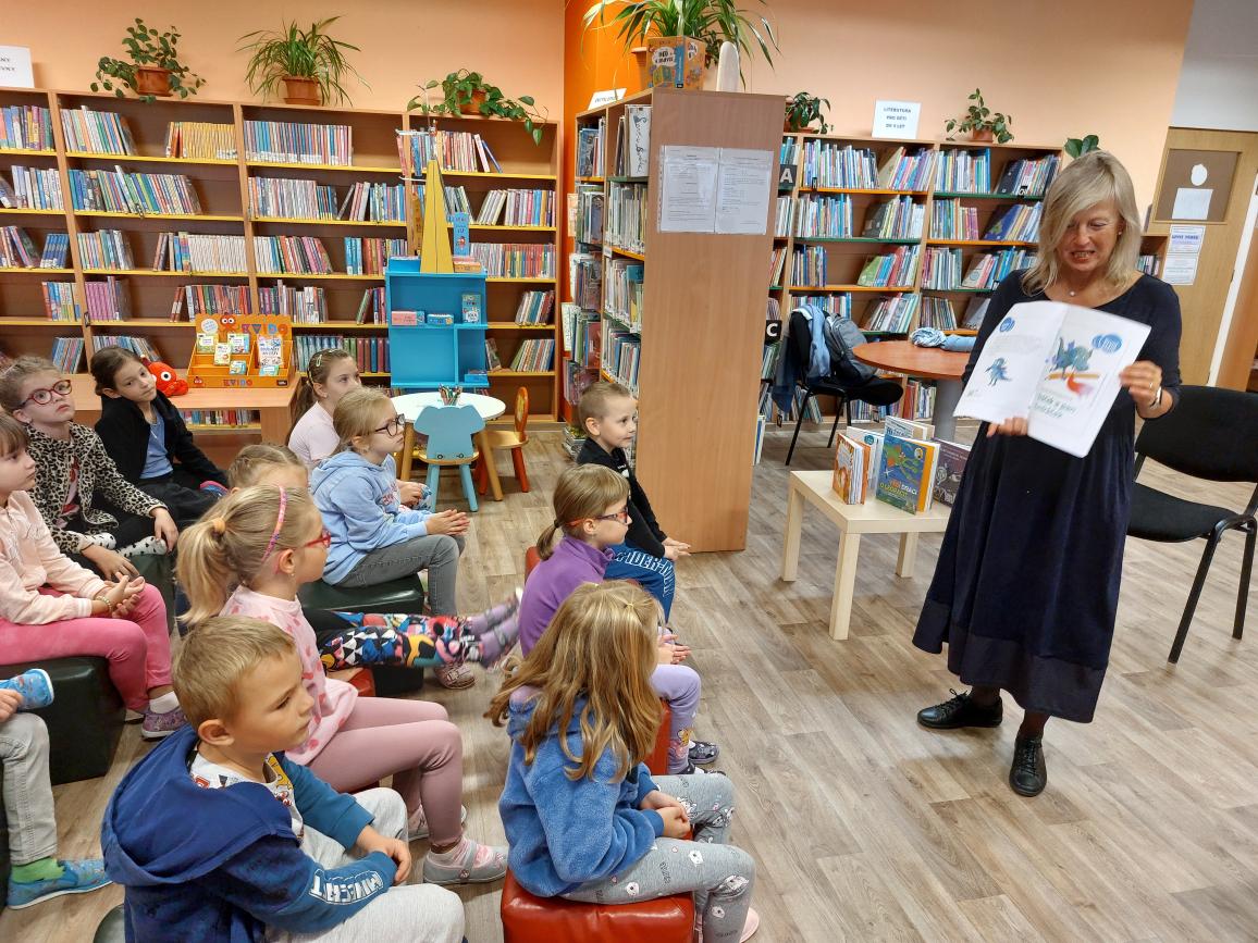 Za našimi prvňáčky zavítala do dětského oddělení knihovny spisovatelka Daniela Krolupperová. Povyprávěla dětem, jak vznikají její knihy a odkud bere nápady, než se příběh dostane až k malým čtenářům. Děti se dozvěděly, že psaní knihy je dlouhá, ale radostná práce plná fantazie.