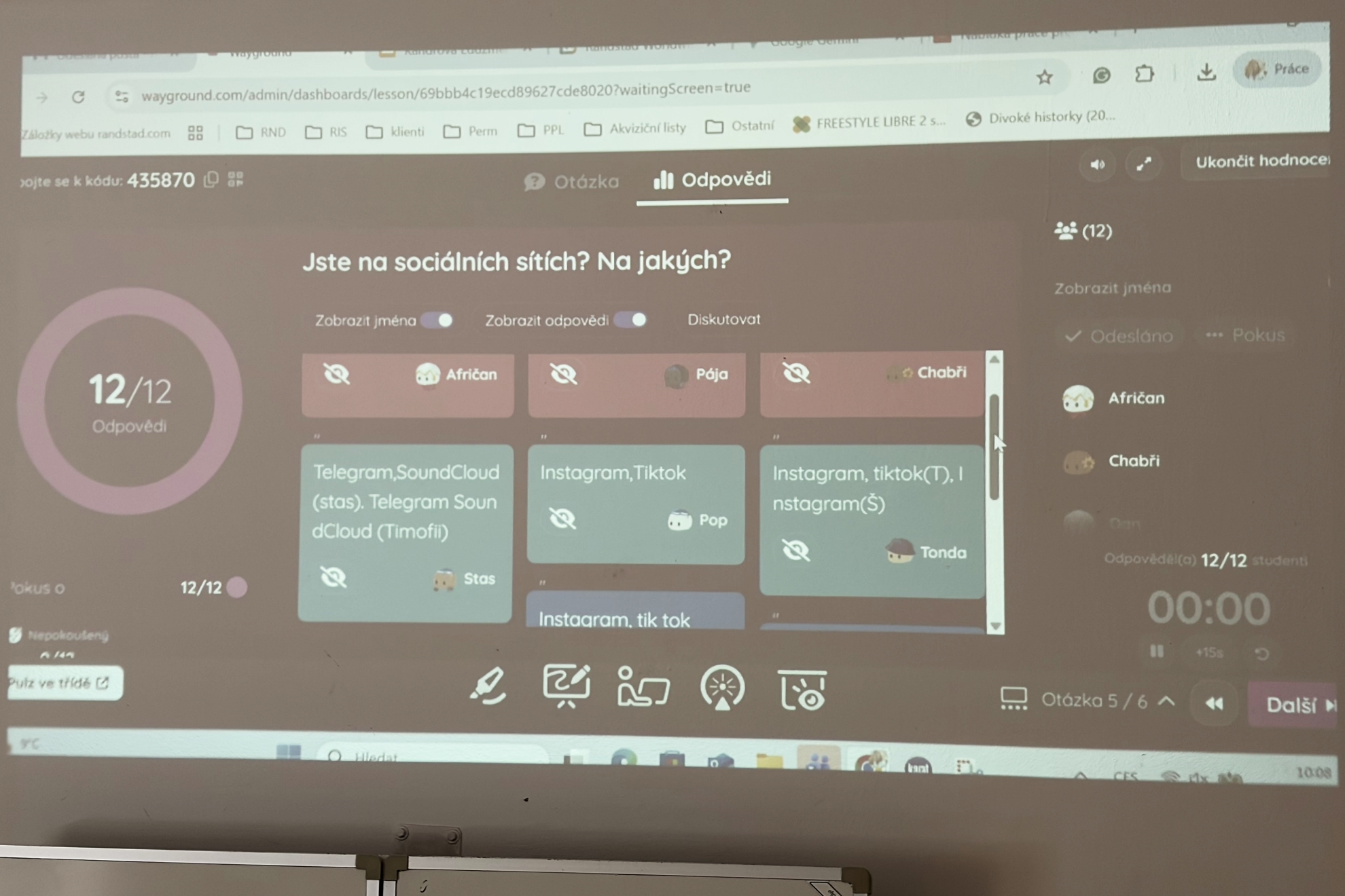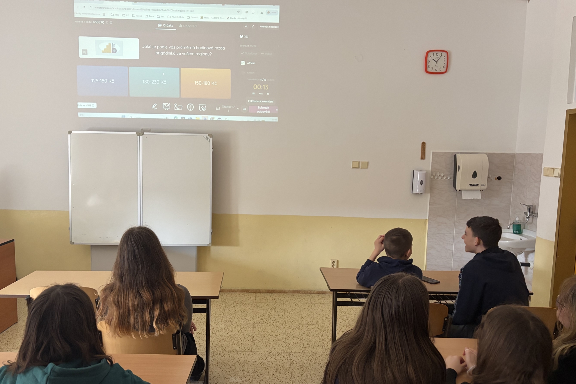 Program se týkal oblíbených brigád pro studenty a vhodných jiných forem zaměstnání pro mladé jako je DPČ (dohoda o pracovní činnosti) nebo DPP (dohoda o provedení práce). Toto téma bylo zakončeno informacemi o pracovních agenturách, znalosti cizích jazyků, nástupu AI na pracovištích a platech, kde se informace týkaly minimální, hrubé a čisté mzdy, které spoustu žáků zaskočily a rozpoutala se živá debata nejen na téma peníze, ale i sociální sítě a AI na pracovních pozicích.